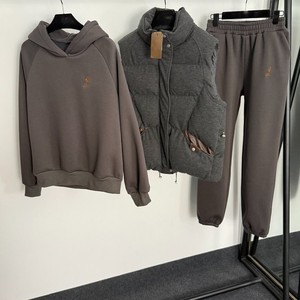 灰色运动服套装女春秋欧美风美式棉宽松马甲卫衣哈伦裤休闲三件套