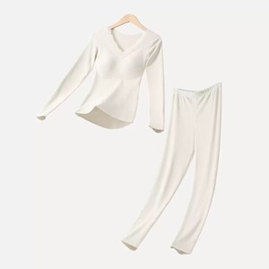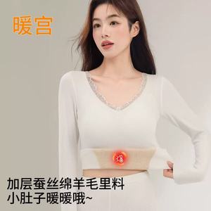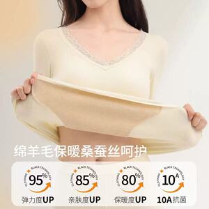 秋冬羊绒桑蚕丝保暖女带胸垫保暖套装高弹显瘦羊绒百搭打底蕾丝