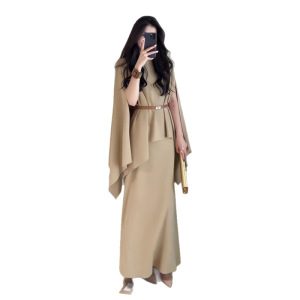 深圳南油慵懒风套装裙女春秋不规则斗篷披肩外套高腰半身裙两件套