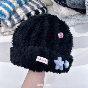批发韩国2025年秋冬新款韩版字母贴布针织帽女大头围显脸小毛线帽