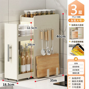 奶油白色 分离式抽拉调料柜【大号】台面三层单架-加厚碳钢 加强承重 防锈耐磨