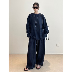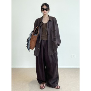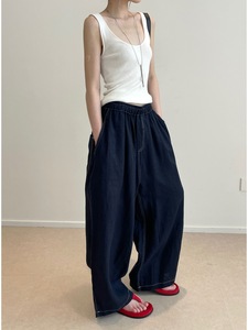 100汉麻!2025秋季双重水洗九支细支抽绳宽松阔腿休闲裤麻裤子女