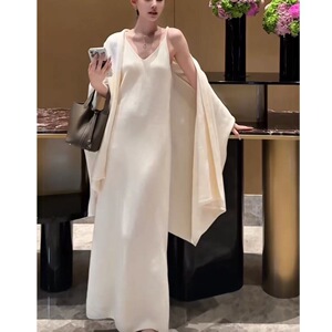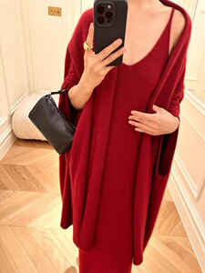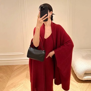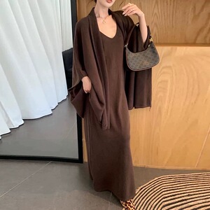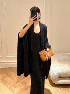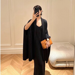 法式气质吊带针织连衣裙女秋冬慵懒风松弛感斗篷式披肩两件套套装