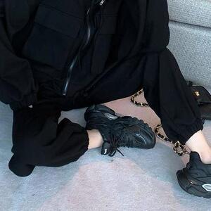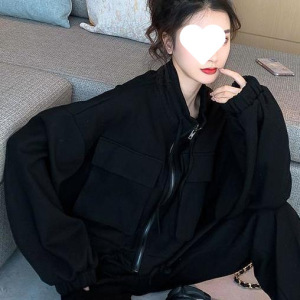灰色时尚休闲工装套装女2025秋季新款韩版宽松短外套阔腿裤两件套