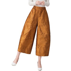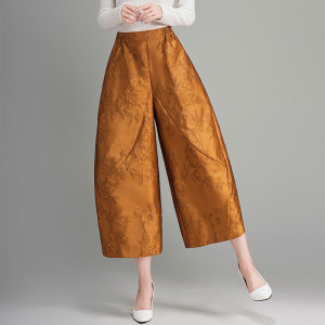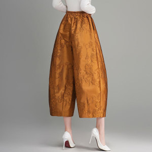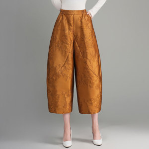 香云纱真丝阔腿裤秋季桑蚕丝九分灯笼裤新中式国风提花花苞裤子女