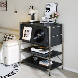恪真沙发边柜客厅置物架落地杂志黑胶唱片展示CD柜咖啡角餐桌边柜