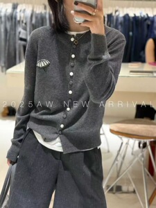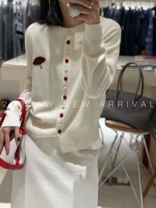 欧货2025早秋新款圆领单排扣小雨伞长袖针织开衫女宽松显瘦外套