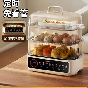 升级智能彩屏【上蒸下涮/加深不粘锅】三层+预约保温