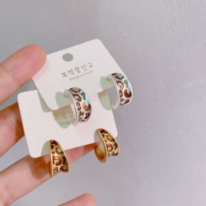 秋冬新款复古滴油豹纹C形耳环欧美风轻奢高级感个性气质银针耳圈