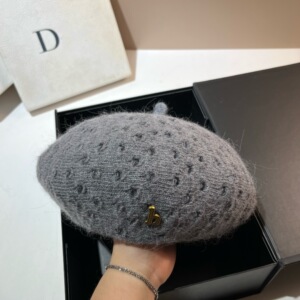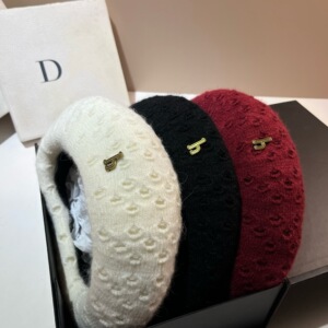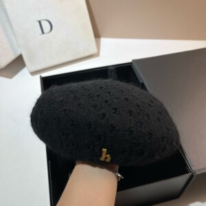 H标冬季兔毛钩针贝雷帽北方保暖大头围休闲针织堆堆帽韩版画家帽