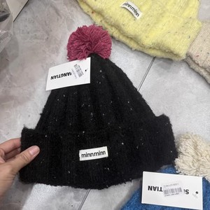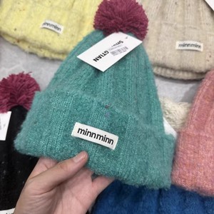 撞色拼色彩色小毛球可爱减龄毛线帽子女秋冬保暖m字母显瘦针织帽