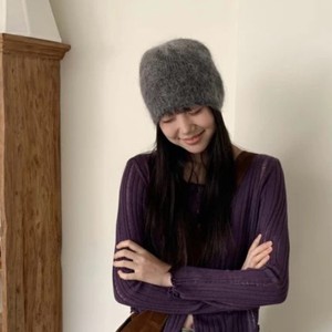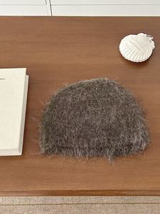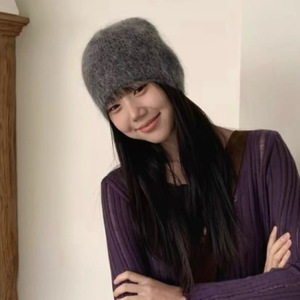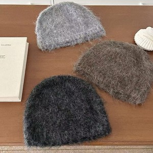 新款纯色简约毛茸茸针织包头保暖毛线帽百搭护耳套头帽韩国同款女