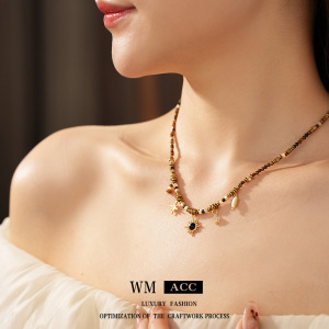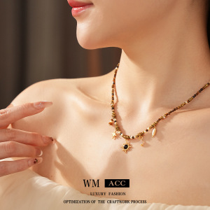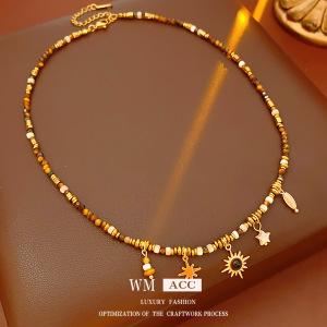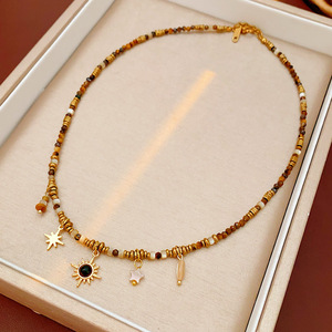 民族风太阳虎眼石吊坠项链时尚复古锁骨链设计感小众饰品女高级感
