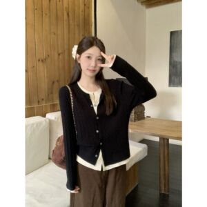 实拍2025秋季新款胖mm大码韩系假两件针织衫设计感毛衣外套69350