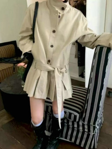 轻职风减龄百褶下摆风衣女2025秋冬季新款气质通勤收腰中长款外套