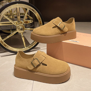 勃肯鞋女加绒单鞋2025年春秋新款厚底松糕一脚蹬乐福鞋全包博肯鞋