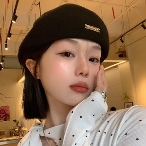 黑色反戴贝雷帽女2025新款秋冬季显脸小前进帽韩系大头围画家帽子