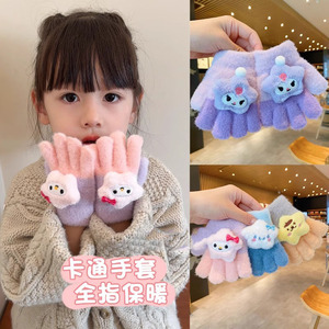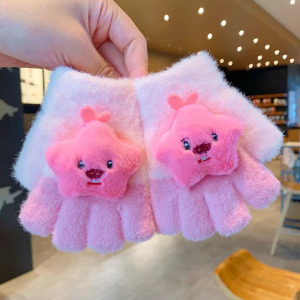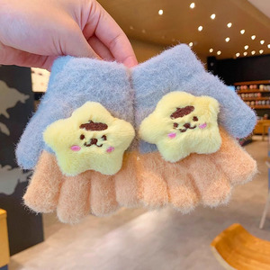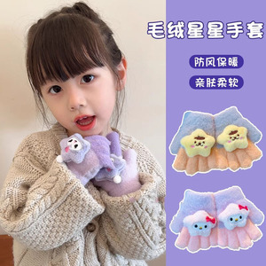 儿童手套卡通星星针织冬季防寒可爱毛绒男女宝宝通用五指提花手套