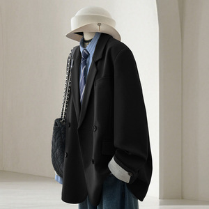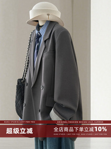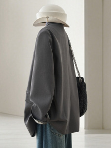 4U4U 灰色宽松显瘦西装女2025春季新款高品质袖口设计感复古外套