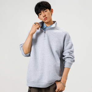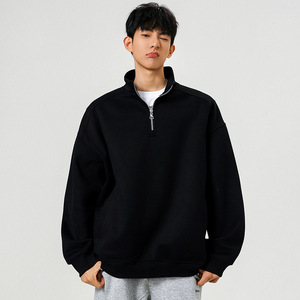320g华棉半拉链立领卫衣男春秋新款美式半高领套头卫衣休闲上衣男