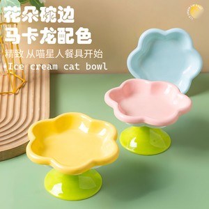 新款花朵陶瓷猫碗猫咪吃饭饮水碗高脚防打翻护颈猫碗高颜值大口径
