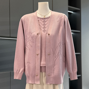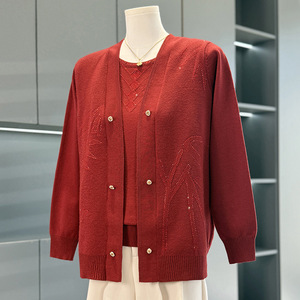 2025年女装两件套中年妈妈装秋时尚中老年人衣服40-60岁针织衫女