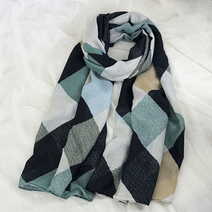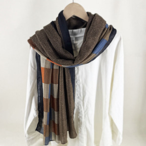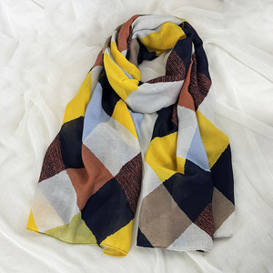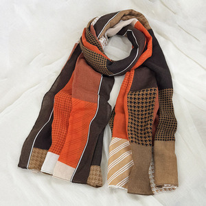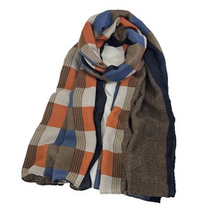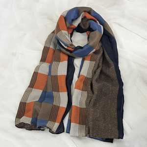 跨境热销秋冬季时尚洋气披肩韩系格子拼色经典百搭长款丝巾围脖女