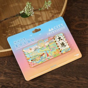 大连文字滑轨旋转冰箱贴朋友圈海豚邮票纪念品字绘票根文创冰箱贴