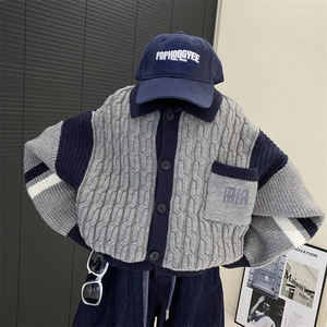 男童春秋韩版学院风POLO领针织衫2025中小童痞帅潮流长袖纯色毛衣