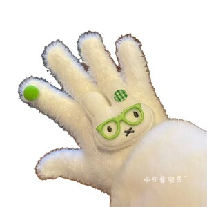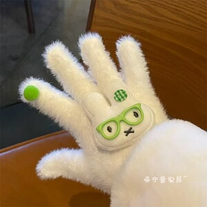 新款戴眼镜米菲小兔毛茸茸手套小众秋冬季复古毛绒保暖手套防冻