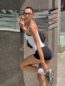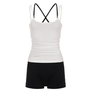 欧美街头风纯色基础修身显瘦挂脖撞色背心连体裤休闲舒适运动套装