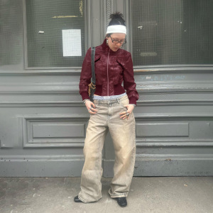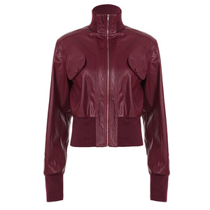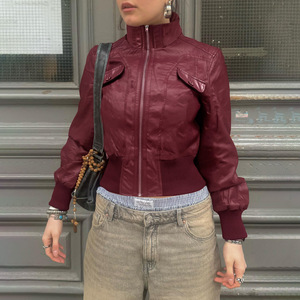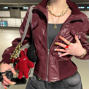 美式复古帅气高领收腰拉链PU皮衣辣妹小众设计感显瘦宽松休闲外套