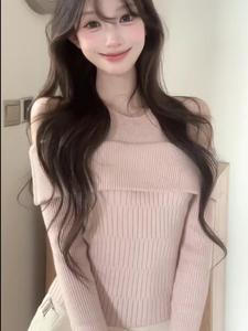 纯欲辣妹镂空露肩假两件一字领针织衫女秋季2025新款内搭长袖上衣