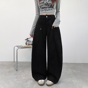 美式镰刀阔腿裤女秋冬款真门襟铆钉设计感直筒长裤高腰显瘦运动裤