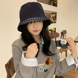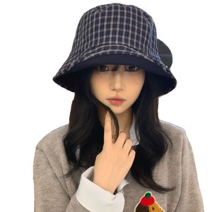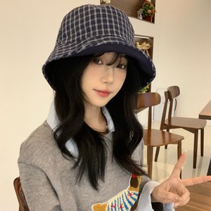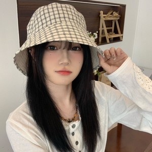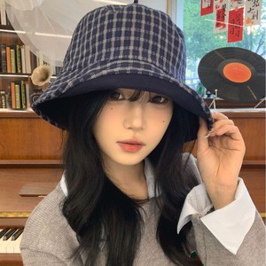 韩国东大门格子渔夫帽女日系休闲百搭双面戴盆帽春秋遮阳防晒帽子