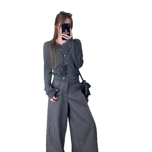 慵懒风垂感灰色西装裤休闲裤女秋季百搭高腰阔腿裤直筒长裤拖地裤