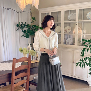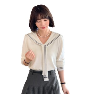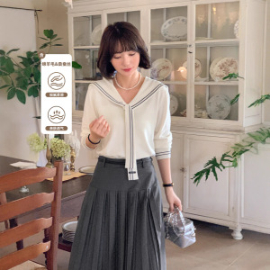 【奶芙甜心】法儿家 初秋米白色系带针织衫女装2025新款休闲上衣