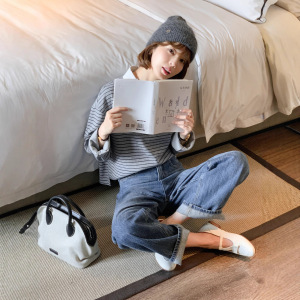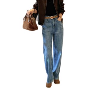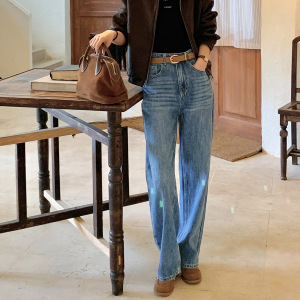 【深蓝步调】法儿家2025新款时尚深色牛仔裤女初秋直筒显瘦休闲裤