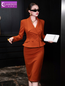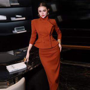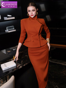 菲梦伊原创西装套装女秋季荷叶边立领修身气质上衣包臀裙子两件套