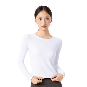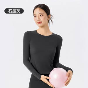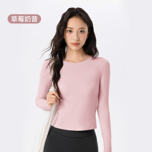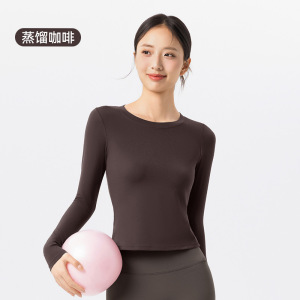 欧美圆领瑜伽服上衣女亲肤裸感健身服高弹修身普拉提训练运动长袖