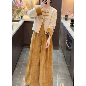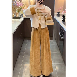 秋日巨好看的独特漂亮气质轻奢高端新中式国风撞色外套阔腿裤套装