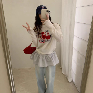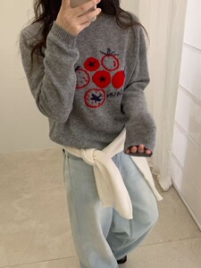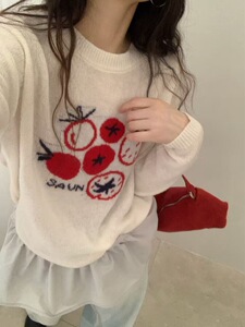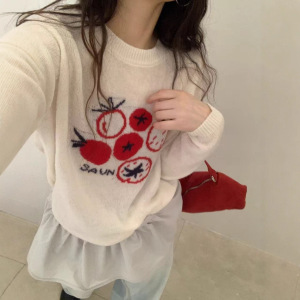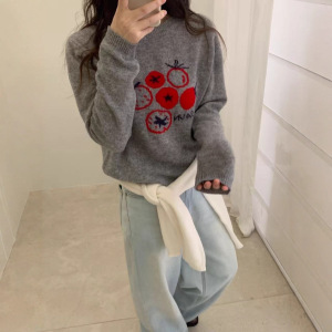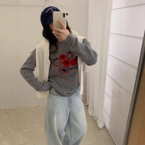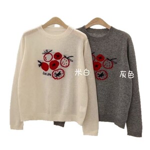 超软糯全毛100%绵羊毛套头毛衣女秋冬新款圆领水果提花针织上衣