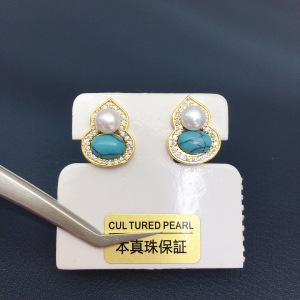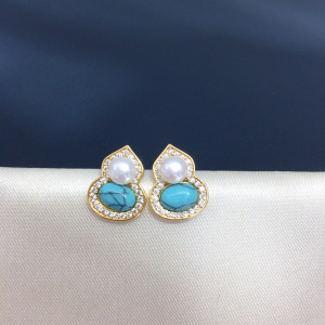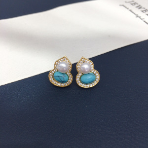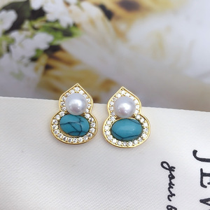 新款绿松石葫芦天然淡水珍珠耳钉女福禄复古高级感珍珠耳环批发