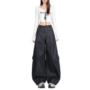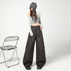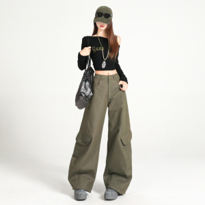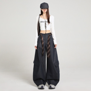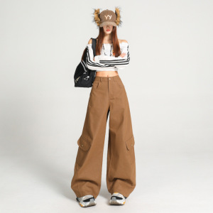 2025秋季新款美式弯刀阔腿休闲裤女宽松垂感高腰显瘦百搭工装裤子