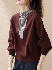 安可拉美学2025秋季新款休闲设计感撞色假两件拼接半高领长袖卫衣