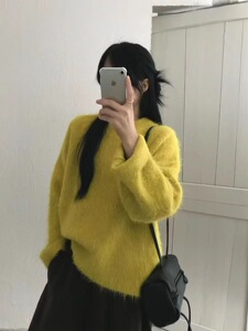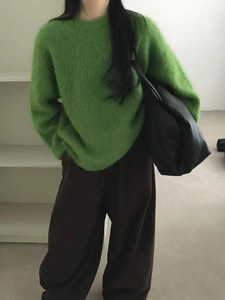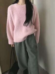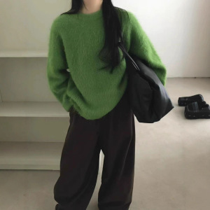毛茸茸质感~软糯简约百搭针织衫韩国高货秋冬季圆领宽松套头毛衣