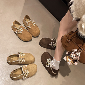 厚底内增高两穿全包勃肯鞋女鞋2025秋季新款一脚蹬博肯单鞋豆豆鞋
