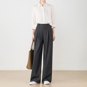 高级灰色西装裤老钱风裤子女2025新款天丝羊毛小众高腰垂感阔腿裤