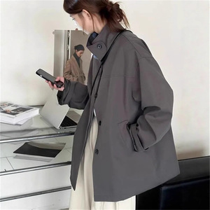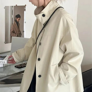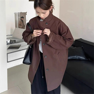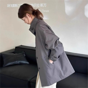 大码休闲立领中长款风衣女秋冬胖mm300斤高级感简约宽松工装外套