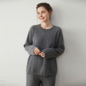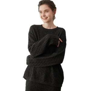 2025秋冬新款羊绒扭花慵懒风套装大码女士山羊绒打底毛衫针织衫